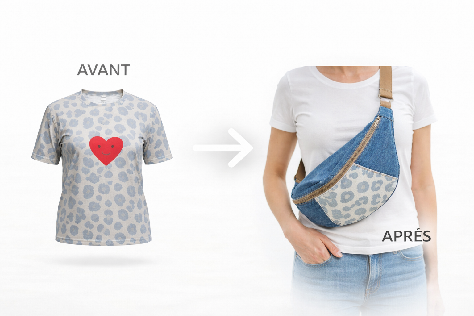 Confiez-moi votre vêtement, je crée une banane unique en taille M ou XL, avec validation avant couture.